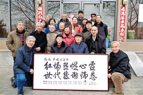 今年86歲盧斌元、83歲的鄭志新兩位老人上個(gè)世紀(jì)五、六十年代在忻府區(qū)董村鎮(zhèn)令歸村小學(xué)擔(dān)任小學(xué)老師,他們可謂桃李滿天下,所教的學(xué)生后來(lái)大多都是機(jī)關(guān)、廠礦、學(xué)校、農(nóng)村的佼佼者,如今這些學(xué)生都已是古稀老人了。2月25日上午,18位接受過(guò)兩位老師教育的令歸村“古稀學(xué)生”特邀恩師座談,共敘尊師重教之情,并向兩位恩師分別贈(zèng)送了題有“紅燭點(diǎn)燃心靈、世代感謝師恩”的書法牌匾。兩位白發(fā)蒼蒼的耄耋老師十分激動(dòng)。(魯明強(qiáng) 攝影報(bào)道)