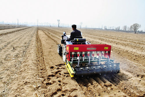 3月18日,原平市新原鄉(xiāng)小河村,一名農機手正在播種小麥,田野上一臺臺正在作業(yè)的農業(yè)機械呈現出一派“鐵牛鬧春”的繁忙景象。(趙月仁 攝)