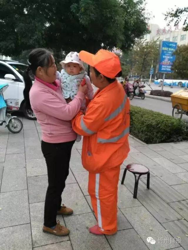 (五)創(chuàng)衛(wèi)工作如火如荼,環(huán)衛(wèi)女工扔下嗷嗷待哺的女兒投身在創(chuàng)衛(wèi)工作。環(huán)衛(wèi)女工正在清掃路面垃圾,母親帶孩子來(lái)找她喂奶,孩子吃飽后,又把孩子交給母親,邊鏟除口香糖,邊望著遠(yuǎn)去的親人,滿臉的依依不舍。(董蘊(yùn)宜 攝)