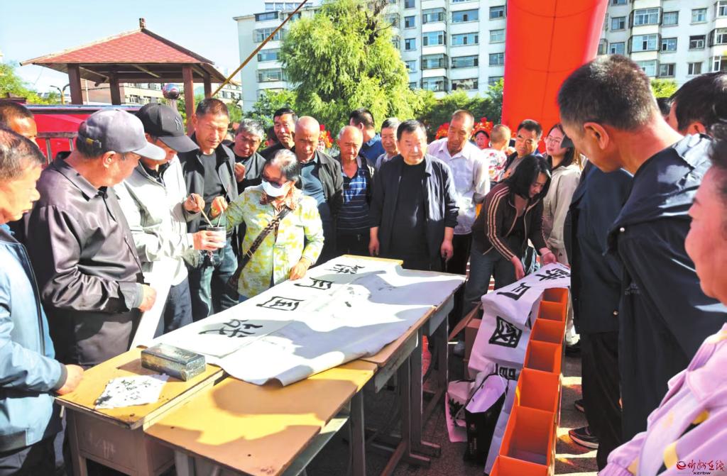 書(shū)法愛(ài)好者們揮毫潑墨,一幅幅飽含深情、寓意美好的作品躍然紙上,引得過(guò)往群眾駐足欣賞。該活動(dòng)不僅豐富了群眾的精神文化生活,還營(yíng)造出濃厚的節(jié)日文化氛圍。(歐麗霞攝)