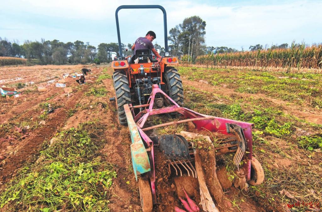 10月13日,忻府區(qū)北合索村村民在收獲紅薯。該村引進(jìn)新品種,增施有機(jī)肥,加強(qiáng)科學(xué)管理,提高紅薯產(chǎn)量和品質(zhì),帶動農(nóng)民增收。 (記者 劉紀(jì)森攝)