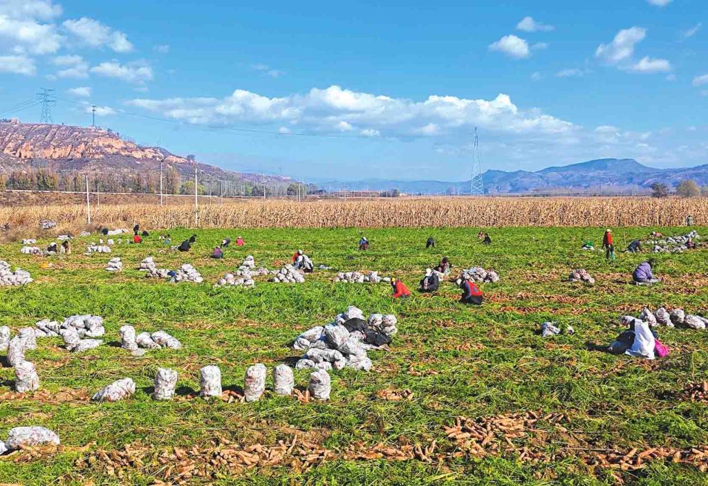 深秋的靜樂縣段家寨村,汾河岸邊的田野里一派熱火朝天的景象。村民們在翠綠的胡蘿卜纓間彎腰采收,一個個橙紅飽滿的胡蘿卜從泥土中“探”出頭來;不遠(yuǎn)處的村口,駐村工作隊(duì)員正和村民們一起將打包好的胡蘿卜裝車,一輛輛貨車即將載著這份豐收的喜悅駛向遠(yuǎn)方。今年,段家寨村迎來玉米、土豆、胡蘿卜大豐收,其中胡蘿卜產(chǎn)量突破200萬斤,成為村里增收的“金疙瘩”。