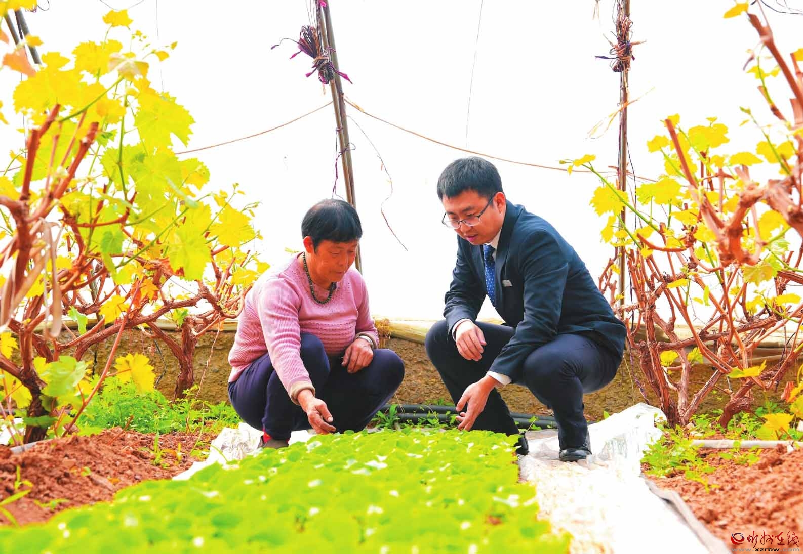 今年以來,忻州農(nóng)商銀行聚焦鄉(xiāng)村特色種植產(chǎn)業(yè),通過加大信貸投放、加強技術指導等方式,切實幫助大棚種植戶解決生產(chǎn)經(jīng)營中面臨的資金與技術難題,為產(chǎn)業(yè)發(fā)展注入了金融動力。圖為該行工作人員在大棚種植基地了解作物生長情況。(任飛鴻攝)