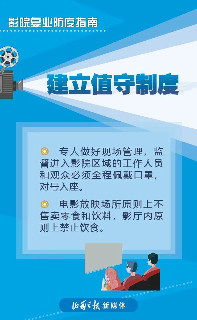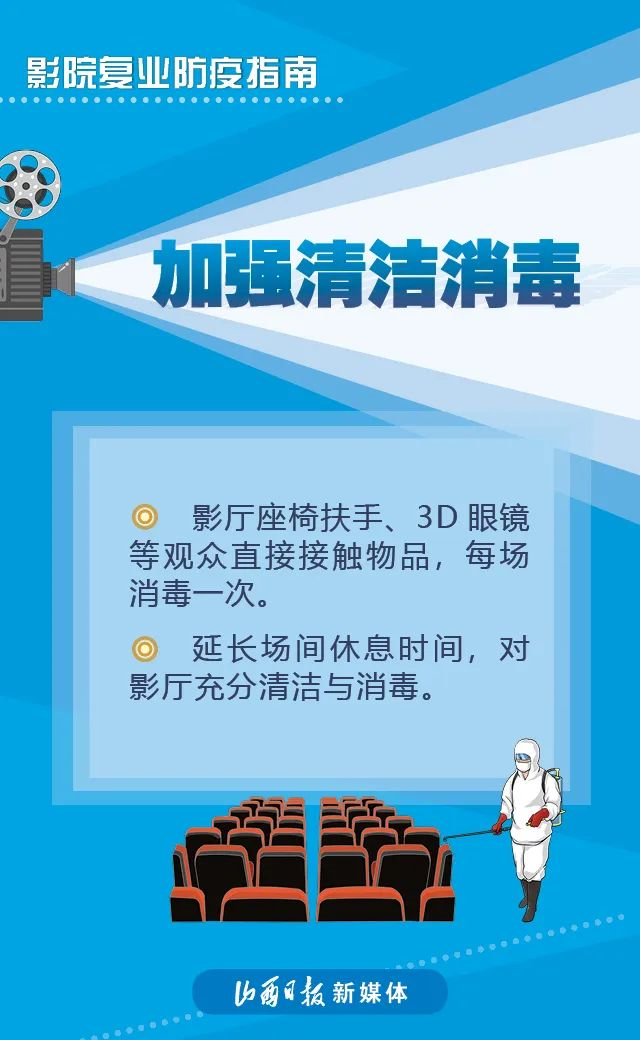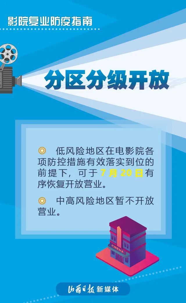 近日,國家電影局發(fā)布《關(guān)于在疫情防控常態(tài)化條件下有序推進電影院恢復(fù)開放的通知》稱,低風險地區(qū)在電影院各項防控措施有效落實到位的前提下,可于7月20日有序恢復(fù)開放營業(yè)。具體要求如下↓↓↓