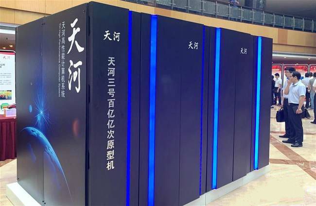 △2019年7月6日,“紀(jì)念中國超級計算事業(yè)發(fā)展四十年暨國家超級計算天津中心成立十周年”活動在天津濱海新區(qū)舉行。這是活動現(xiàn)場展示的“天河三號”百億億次原型機。