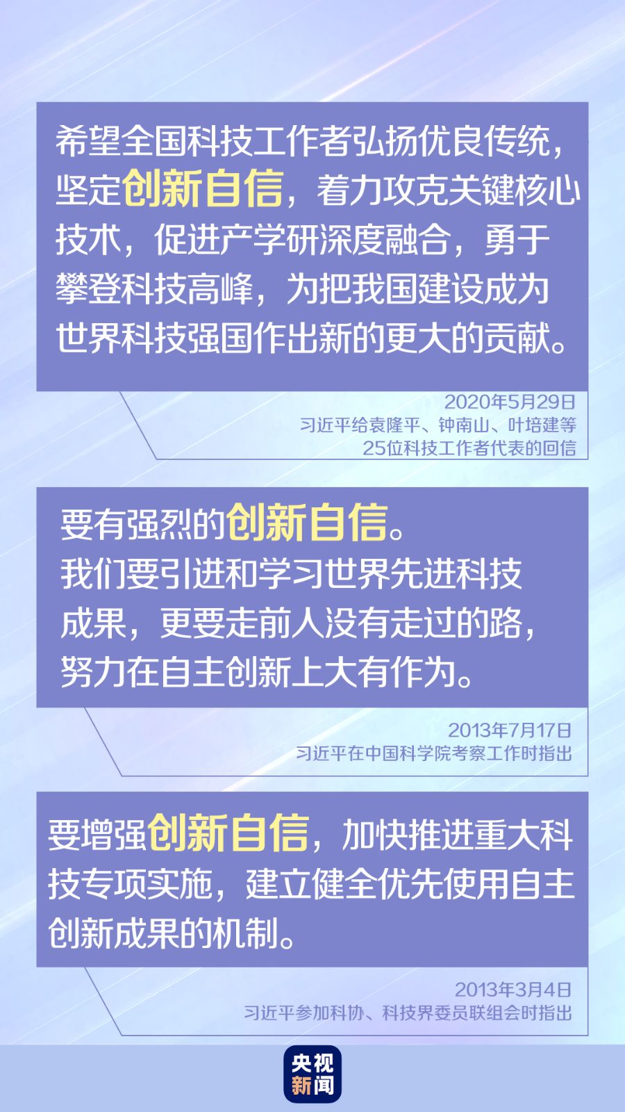 今年“全國科技工作者日”到來之際,習(xí)近平給25位科技工作者代表回信,再次強調(diào)“堅定創(chuàng)新自信”,勉勵廣大科技工作者為把我國建設(shè)成為世界科技強國作出新的更大的貢獻(xiàn)。