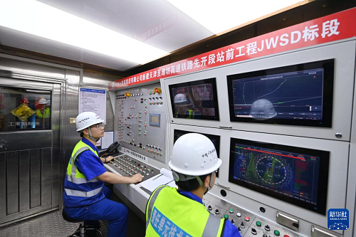 5月19日,中鐵十四局的建設(shè)者在津?yàn)H高鐵津沽海河隧道施工。(新華社記者 李然 攝)