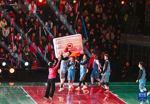 2月3日,人們在2026貴州“村晚”現(xiàn)場展示“姑媽”籃球。(新華社記者 楊文斌 攝)