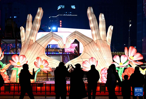 2月11日,市民在甘肅省定西市安定區(qū)新時(shí)代廣場(chǎng)觀賞花燈。(新華社發(fā) 陳永剛 攝)