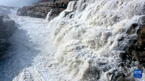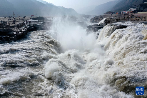 驚蟄時(shí)節(jié),隨著氣溫回暖,黃河上游河段融冰開河速度加快,壺口瀑布水量增大。