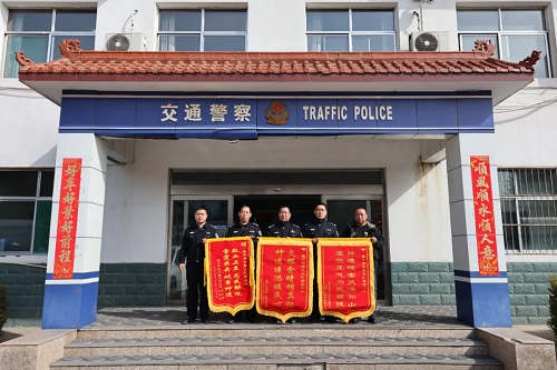 3月13日,原平市同川鎮(zhèn)上社村的郝先生、閆莊村的樊先生l來到原平市公安局交警大隊(duì)事故中隊(duì),將印有“火眼金睛明真相 神速追逃暖民心”“神速破案執(zhí)法如山 凜然正氣為民解憂”的錦旗送到民警手中,以表達(dá)對交警心系群眾、履職盡責(zé)、迅速破案的感激之情。