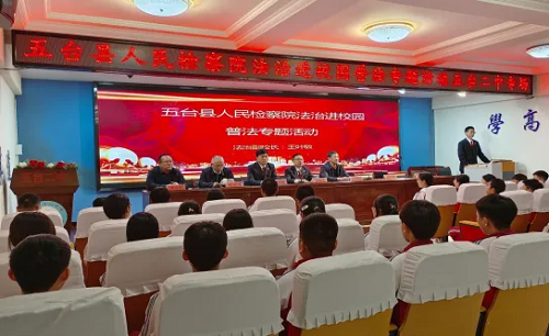 春風(fēng)拂面,法治潤心。為進一步增強青少年的法治觀念和自我保護能力,有效預(yù)防違法犯罪的發(fā)生,4月10日,五臺縣檢察院黨組副書記、主持日常工作的副檢察長牛鵬飛,第一檢察部主任王葉敏一行走進五臺縣第二中學(xué)開展法治進校園普法活動。