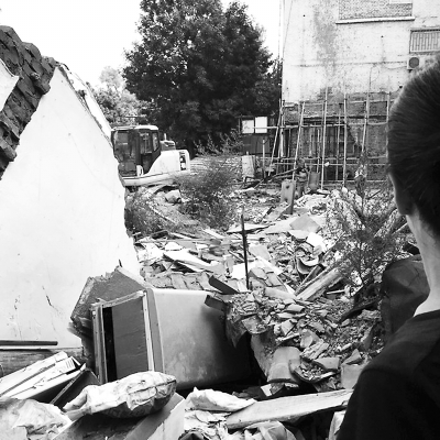 院里幾戶人家大多上了鎖,人去屋空。只有緊挨著93號院的幾間房,完全沒有鎖門的必要。除了還殘存的門窗和一道斜倚的斷墻,已經和93號院的廢墟融為一體。