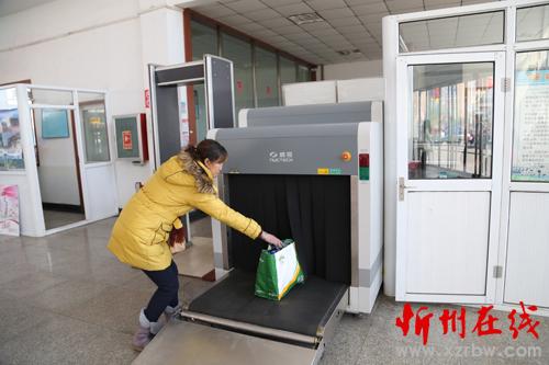 2月4日,靜樂汽車站進(jìn)站安檢處,汽車站工作人員正在為乘客物品過安檢。2016年春運開始以來,該縣加強安保工作,采取安檢儀檢查,開包檢查可疑包裹,加強對液體飲料及管制刀具的檢查等形式,全面加強安檢工作力度,杜絕易燃、易爆、危險物品進(jìn)站上車。(閆曉梅 攝)