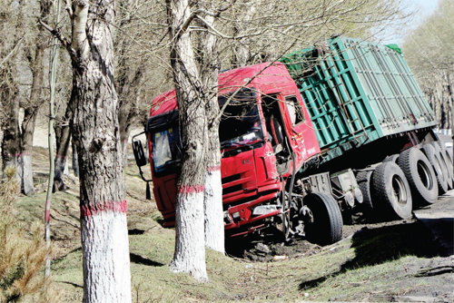 4 月20 日,記者途經(jīng)五寨縣三岔公路,看到一輛大貨車(chē)由于駕駛員疲勞駕駛撞在了路旁的大樹(shù)上,所幸未造成人員傷亡。在此筆者提醒廣大司機(jī)朋友,為了您的安全,切不可疲勞駕駛。(張志遠(yuǎn) 攝影報(bào)道)