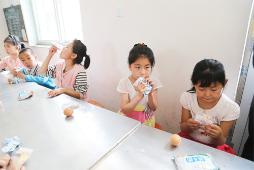 6 月23 日,靜樂縣中莊鄉(xiāng)中莊村小學(xué)學(xué)生正在吃領(lǐng)到的“營養(yǎng)餐”。截至目前,該縣共有4所初中、32 所小學(xué)、40 個教學(xué)點(diǎn)的2391 名中小學(xué)生每天均可享受到農(nóng)村義務(wù)教育“營養(yǎng)餐”所帶來的溫暖。(閆曉梅 攝)