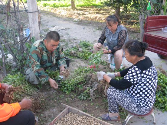 8月28日,河曲縣南園村一戶農(nóng)民圍坐地頭摘花生?;ㄉ钱?dāng)?shù)刂饕?jīng)濟作物,農(nóng)民千方百計促其增效。賣嫩花生變是手段之一。這不,處暑剛過,農(nóng)民就亟不可待地刨花生 、摘花生,搶占嫩花生“旺市”。嫩花生帶殼煮熟,是美味可口的休閑食品、饋贈佳品,備受人們喜愛。此舉豐富了市民餐桌,減輕了一次性收獲后的銷售壓力,每畝還能增收近千元,幾乎相當(dāng)于多種了1畝地。(賈金理 攝)