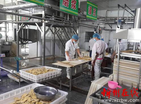 一套套全新的機(jī)械設(shè)備不停地運(yùn)轉(zhuǎn),新鮮的大黃豆經(jīng)過浸泡——?dú)⒕{——過濾——煮漿——混合——凝固——劃腦——壓制成型,透著香味的豆腐干經(jīng)過真空包裝,通過物流運(yùn)往北京、太原、大同等地的超市,這是繁峙縣綠源亨通食品有限公司豆腐干生產(chǎn)線,2016年已加工500噸豆腐干,實(shí)現(xiàn)產(chǎn)值500萬元,帶動周邊上百名農(nóng)民增收。(喬偉 攝)