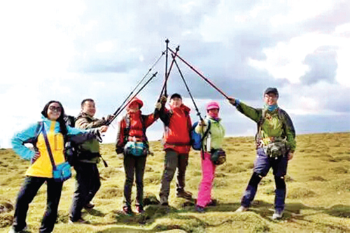 我們不曾相識,一點愛溫暖了人間。從東臺下來,一開始就不見了女兒,還好有閨蜜在身邊談天說地,偶爾“龍哥”擦身而過扔下一句笑話,轉(zhuǎn)眼就不見了蹤影;劉教授常跑國外,腿很長,頭戴禮帽,不用登山杖,腳步輕盈;“大師兄”人見人愛,他的腰間掛一個袋子,是用來裝路上撿到的水瓶、塑料袋、果皮等垃圾的,他身上的雨衣、登山杖好像是給大伙準備的,誰需要就送給誰;郭大律師看見剛從山下上來,上氣不接下氣、氣喘不停的同行人,忙把自己的雨衣翻過來鋪在大石頭上讓人坐?!吧裢取笨偸窃陉犖榈淖詈?,落在后面的人,只要看見“神腿”就信心倍增,和“神腿”合張影,比出個“二”的手勢,仿佛自己也是“神腿”了。吳老師人很好,熱情地幫我拍了一張“打坐”的美照,真可謂不懂?dāng)z影的老師不是優(yōu)秀企業(yè)家;見到海濤群主不時從山上往山下跑,照顧落在后面的人;又遇見一位腰間掛垃圾袋的人,他走近一頭正在喂奶的母牛,像老朋友一樣輕輕地撫摸這牛的頭部,聽說他是講國學(xué)的馬老師。佛家講的是一種緣分,有緣自然來相會,我和馬老師聊著爬上了一個山頭,心頭一怔,馬老師不就是我們的學(xué)問大咖嗎?我們的八月大朝臺隊伍里藏龍臥虎,稍不留神,大咖就會從你身邊溜走。正說著,閨蜜劉老師從我身邊經(jīng)過,腰間掛著一袋子垃圾,直向前面一個易拉罐追去……