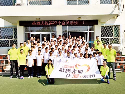 在全國(guó)助殘日前夕,5月20日,大地財(cái)產(chǎn)股份有限公司忻州分公司的愛心志愿者們來到忻州市特殊教育學(xué)校為學(xué)生們捐贈(zèng)了籃球、羽毛球拍、書本等價(jià)值3千余元的文體用品。圖為志愿者群體與學(xué)生合影。郭浩東 攝影報(bào)道