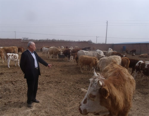 站在牛群中,老劉身形高大,一副“牛司令”的派頭。他看看這頭牛,又摸摸那頭牛,指著一頭黃白花色的牛說(shuō):“這叫西蒙達(dá)爾牛,原產(chǎn)于瑞士西部的阿爾卑斯山區(qū)。這頭體型高大的牛叫夏洛萊,原產(chǎn)于法國(guó)中西部到東南部地區(qū),是舉世聞名的大型肉牛品種,生長(zhǎng)快、肉量多、耐粗放,很受國(guó)際市場(chǎng)歡迎?!?/p>