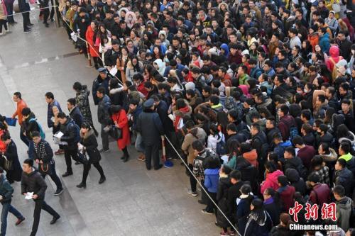 資料圖:山西太原,參加公務(wù)員考試的考生查看考場(chǎng)分布。 韋亮 攝