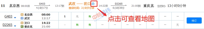 在信息篩選完畢后,大家可以從黃色字體標(biāo)注的車站和時(shí)間信息,得知是否在同一車站換乘以及接續(xù)時(shí)間。需要注意的是,不同的換乘地點(diǎn)一般接續(xù)時(shí)間不一樣,大家應(yīng)充分考慮各種影響換乘的因素,預(yù)留充分的時(shí)間搭乘下一趟列車。