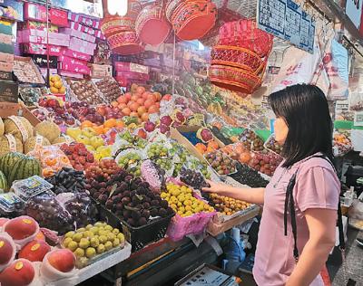 北京三源里菜市場,品種豐富的進口及國產(chǎn)水果吸引市民駐足選購。本報記者 孔德晨攝
