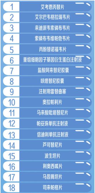 國家醫(yī)保局醫(yī)藥服務(wù)管理司司長熊先軍介紹,此次談判成功的藥品多為近年來新上市且具有較高臨床價值的藥品,涉及癌癥、罕見病、風(fēng)濕免疫、心腦血管、消化等10余個臨床治療領(lǐng)域。重點領(lǐng)域的5個基本藥物全部談判成功,22個抗癌藥、7個罕見病用藥、14個慢性病(含糖尿病、乙肝、風(fēng)濕性關(guān)節(jié)炎等)用藥、4個兒童用藥談判成功,進一步優(yōu)化了目錄結(jié)構(gòu)。