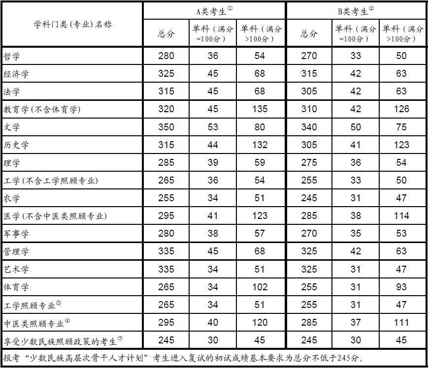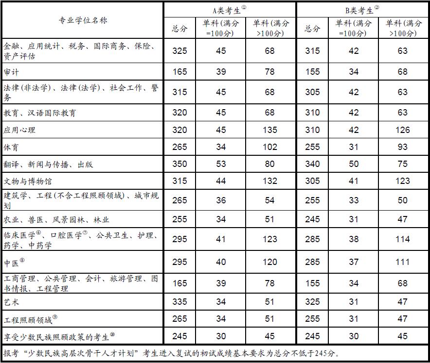 2016年全國碩士研究生招生考試考生進(jìn)入復(fù)試的初試成績基本要求(專業(yè)學(xué)位類)