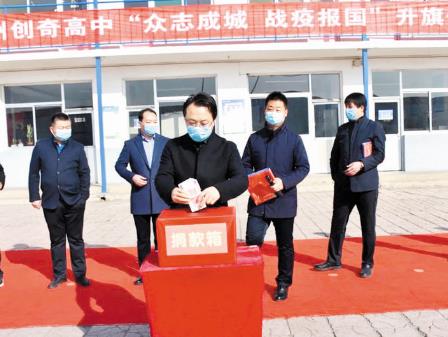 自新冠肺炎疫情發(fā)生以來(lái),忻州創(chuàng)奇高中在做好學(xué)校疫情防控工作、宣傳抗疫英雄事跡、對(duì)師生進(jìn)行家國(guó)情懷教育的同時(shí),發(fā)出支持新冠肺炎疫情防控工作愛(ài)心捐款的倡議,積極組織師生進(jìn)行捐款。全體師生積極響應(yīng),通過(guò)線(xiàn)上、線(xiàn)下的方式捐款,表達(dá)對(duì)湖北、對(duì)武漢的支持和關(guān)愛(ài),用實(shí)際行動(dòng)譜寫(xiě)了一曲擔(dān)當(dāng)、大愛(ài)的奉獻(xiàn)之歌。全校師生線(xiàn)上線(xiàn)下捐款共計(jì)10萬(wàn)元,彰顯了學(xué)校的拳拳愛(ài)心,體現(xiàn)了創(chuàng)奇人心手相連、守望相助、眾志成城、戰(zhàn)疫報(bào)國(guó)的決心與信心。