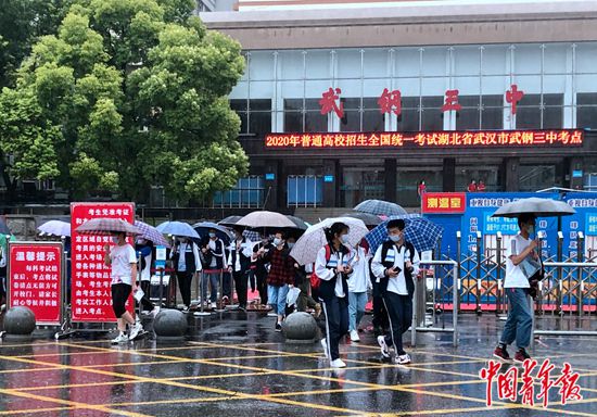 7月7日上午,湖北省武漢市武鋼三中考點(diǎn),語文考試結(jié)束后,考生們陸續(xù)走出考場(chǎng)。中青報(bào)·中青網(wǎng)記者 朱娟娟/攝