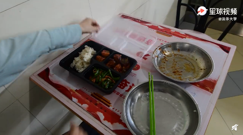 在清華食堂,適合按重量出售的飯菜按“兩”計,饅頭可根據(jù)購買者需求按1/2份售賣,除此之外,餐廳和快餐還提供打包袋、打包盒,可以剩餐打包。