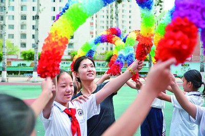 河北省邯鄲市邯山區(qū)農(nóng)林路小學,老師和學生一起參加活動。李昊攝/光明圖片