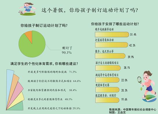 這個(gè)暑假,90.1%的受訪家長(zhǎng)給孩子制訂了運(yùn)動(dòng)計(jì)劃。
