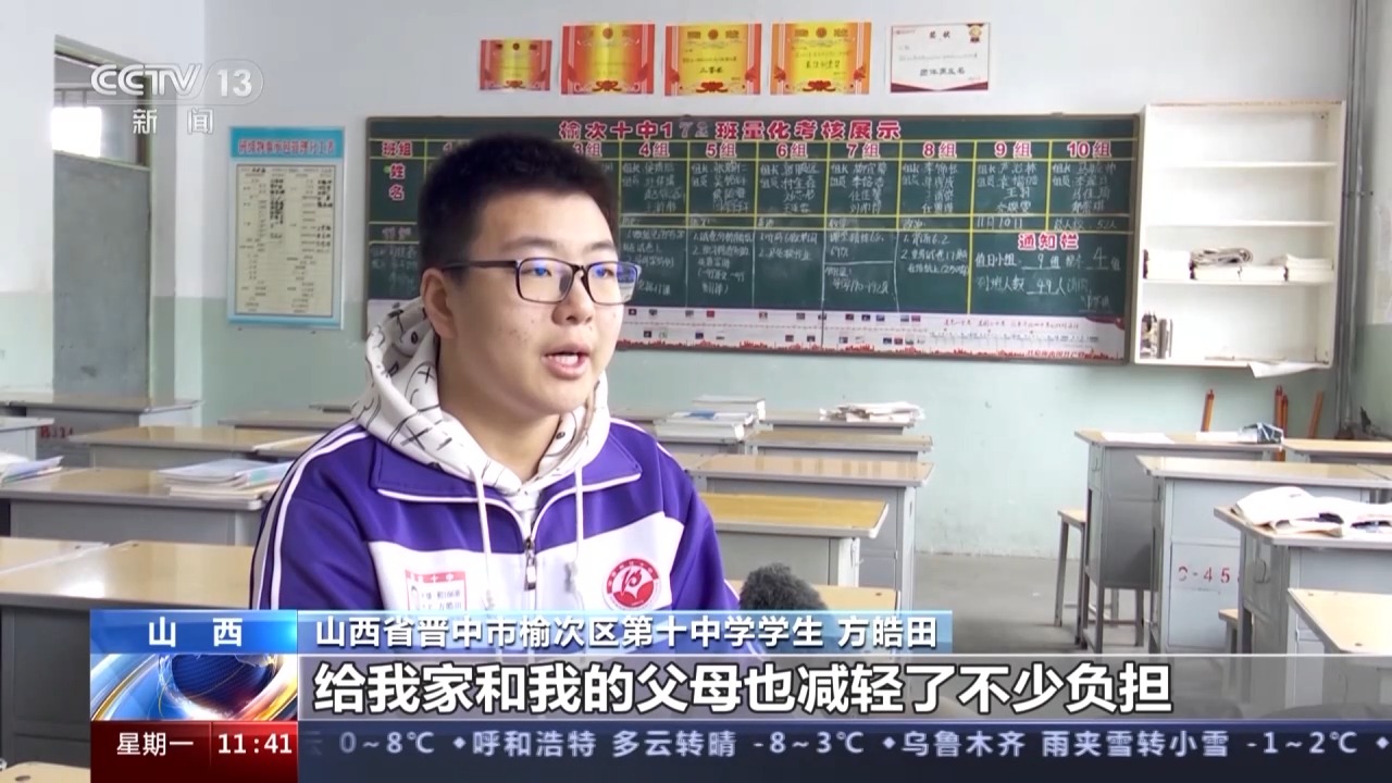 山西省晉中市榆次區(qū)第十中學學生 方皓田:學校為我們每個學生都上了校方責任險,算下來醫(yī)療費除醫(yī)保報銷部分以外,剩余的12000多元都給我報銷了,給我家和我的父母也減輕了不少負擔。