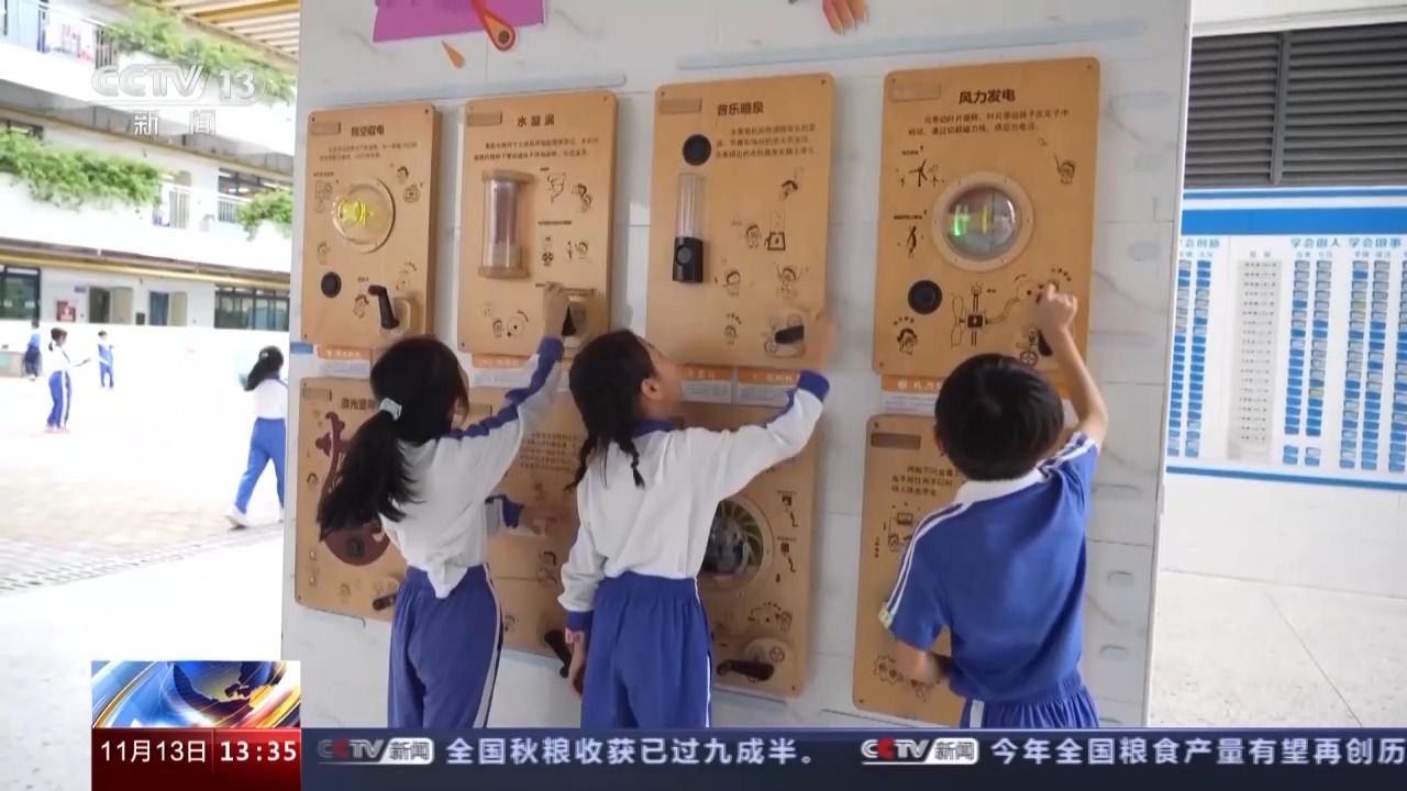 如果同學們課間不想運動,學校還在每層布置了科學互動角,“發(fā)電輪”“燈光隧道”“音樂噴泉”“水漩渦”等十幾個交互式科技項目也在課間對同學們開放。