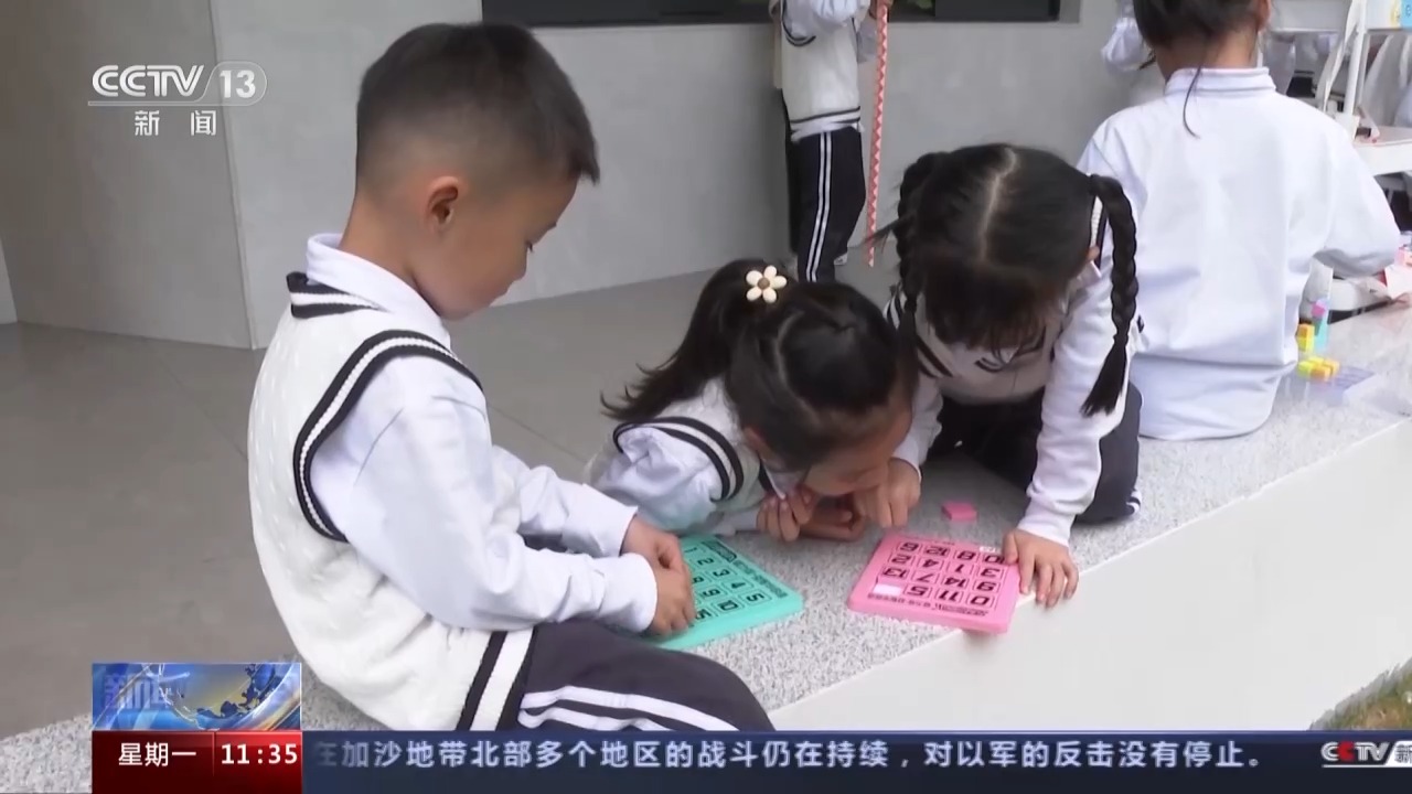 記者看到,因為面積局促,學校對所有活動空間都進行了精心規(guī)劃改造。在教室里,每個班都設置了像這樣的游戲角,利用飛行棋、自制古詩卡等三五分鐘就能開展起來的益智類小游戲,讓同學們在有限空間內放松心情;學校還專門對這個閱讀空間進行了改造,增設了跳繩、乒乓球、鋼琴和國際象棋等室內運動和游戲區(qū)域,在戶外,則增設了器械區(qū)和攀巖墻。