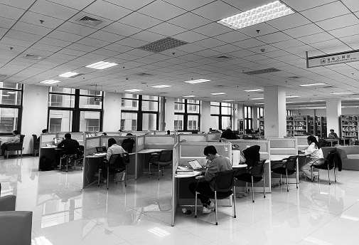 北京電子科技職業(yè)學(xué)院圖書館,有隔板有電源的自習(xí)區(qū)域很受歡迎。