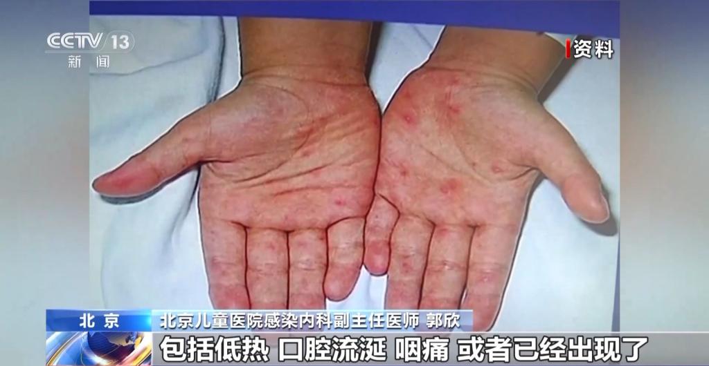 北京兒童醫(yī)院感染內(nèi)科副主任醫(yī)師 郭欣:通過(guò)一些蛛絲馬跡來(lái)早期發(fā)現(xiàn),可以去仔細(xì)觀察孩子的口腔、皮膚的黏膜,通常典型的癥狀就是累及手部、腳部,還有孩子的小屁屁上,可能會(huì)出現(xiàn)小紅點(diǎn)。在潛伏期3—5天之后,孩子可能早期會(huì)出現(xiàn)一些包括低熱、口腔流涎、咽痛,或者已經(jīng)出現(xiàn)了手足或者臀部的這種皮疹,這樣如果出現(xiàn)這樣的癥狀,家長(zhǎng)就一定要注意孩子可能罹患了手足口病。