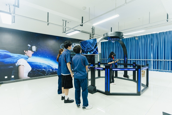 西安航空職業(yè)技術(shù)學(xué)院學(xué)生正在進(jìn)行VR畫面體驗(yàn)測(cè)試。學(xué)校供圖