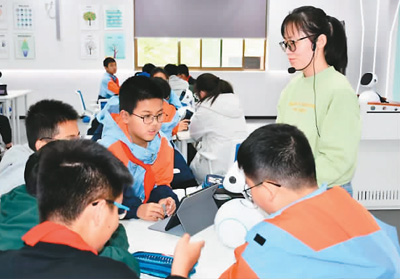 隨著大規(guī)模應(yīng)用的持續(xù)推進,中國教育的優(yōu)質(zhì)數(shù)字資源覆蓋面顯著提升。近年來,中國著眼縮小區(qū)域差距,實施“慕課西部行計劃2.0”,提供19.8萬門慕課及定制化課程,服務(wù)西部高校學生5.4億人次。立足推進鄉(xiāng)村振興,2023年啟動首期數(shù)字支教創(chuàng)新試驗,為1.4萬名鄉(xiāng)村中小學生,送去科普、藝術(shù)類等課程2500多節(jié)。如今,位于上海的華東師范大學志愿者,可以通過平臺與幾千里之外的云南省的小學生,共同體驗傳統(tǒng)文化、感知科技前沿、交流內(nèi)心世界。