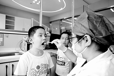 浙江嘉興經(jīng)開區(qū)組織兒童牙齒義診活動走進嘉北街道暑托班。張娟攝/光明圖片