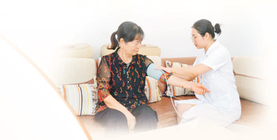 盛思敏入戶為居民測(cè)量血壓。