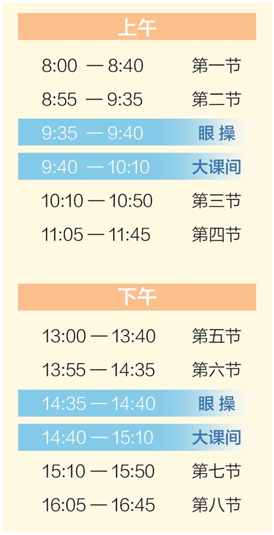 為落實(shí)課間時(shí)長(zhǎng),沈陽(yáng)七中把課堂時(shí)間從45分鐘調(diào)整為40分鐘。