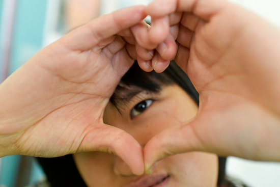 11月9日,貴州省遵義市鳳岡縣特殊教育學(xué)校,一名學(xué)生在教室里上課時(shí)對(duì)著照相機(jī)做心形手勢。