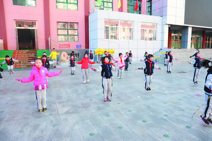 冬日暖陽(yáng)下,忻州市實(shí)驗(yàn)小學(xué)校園里一派生機(jī)勃勃的景象。武術(shù)訓(xùn)練場(chǎng)上,孩子們正在認(rèn)真扎馬步、練拳術(shù),一招一式打得虎虎生威,眼睛里閃爍著堅(jiān)毅和自信的光芒。百人腰鼓隊(duì)排著整齊的隊(duì)伍,伴著音樂(lè)的節(jié)奏不停變換著步伐,鼓槌上的紅綢子上下舞動(dòng),看得人眼花繚亂?;ㄊ交@球挑戰(zhàn)籃球極限,展示籃球技術(shù)和表演的完美結(jié)合?;犹K中,孩子們?cè)诃h(huán)擺的繩索中做著各種跳躍動(dòng)作……操場(chǎng)上,熱火朝天,教學(xué)樓里,每一間教室里都散發(fā)著濃濃的趣味性。“一撇一捺,書寫堂堂正正中國(guó)字”“編程要注意邏輯關(guān)系”“三原色是哪些顏色呢?”……這是市實(shí)驗(yàn)小學(xué)每周三開(kāi)展的第二課堂綜合實(shí)踐活動(dòng),也是孩子們最興奮最高興的校園時(shí)光。