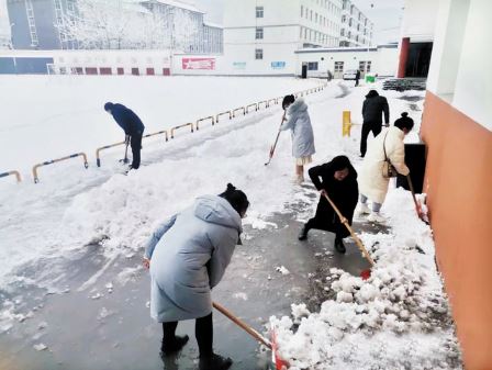岢嵐三中教師清除校園內(nèi)的積雪,喜迎春季開學。田沁梅攝