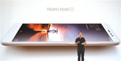 今年3月3日,在印度首都新德里,小米科技推出專門針對(duì)印度市場(chǎng)的紅米Note 3手機(jī)。圖為小米科技全球副總裁雨果·巴拉在發(fā)布會(huì)上介紹紅米Note 3手機(jī)。 新華社記者 畢曉洋攝
