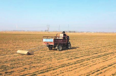 冬管正當(dāng)時,壓苗保豐收。冬日的南胡村田埂上,幾臺磙子正在來回作業(yè),將麥田壓實。管護工人張清賢正熟練地操作著磙子,他笑著介紹:“這是在滾地壓地,作用就是保墑,防止水分流失。咱們這也壓了兩三天了,基本上壓好了,明年肯定又是大豐收?!?/p>